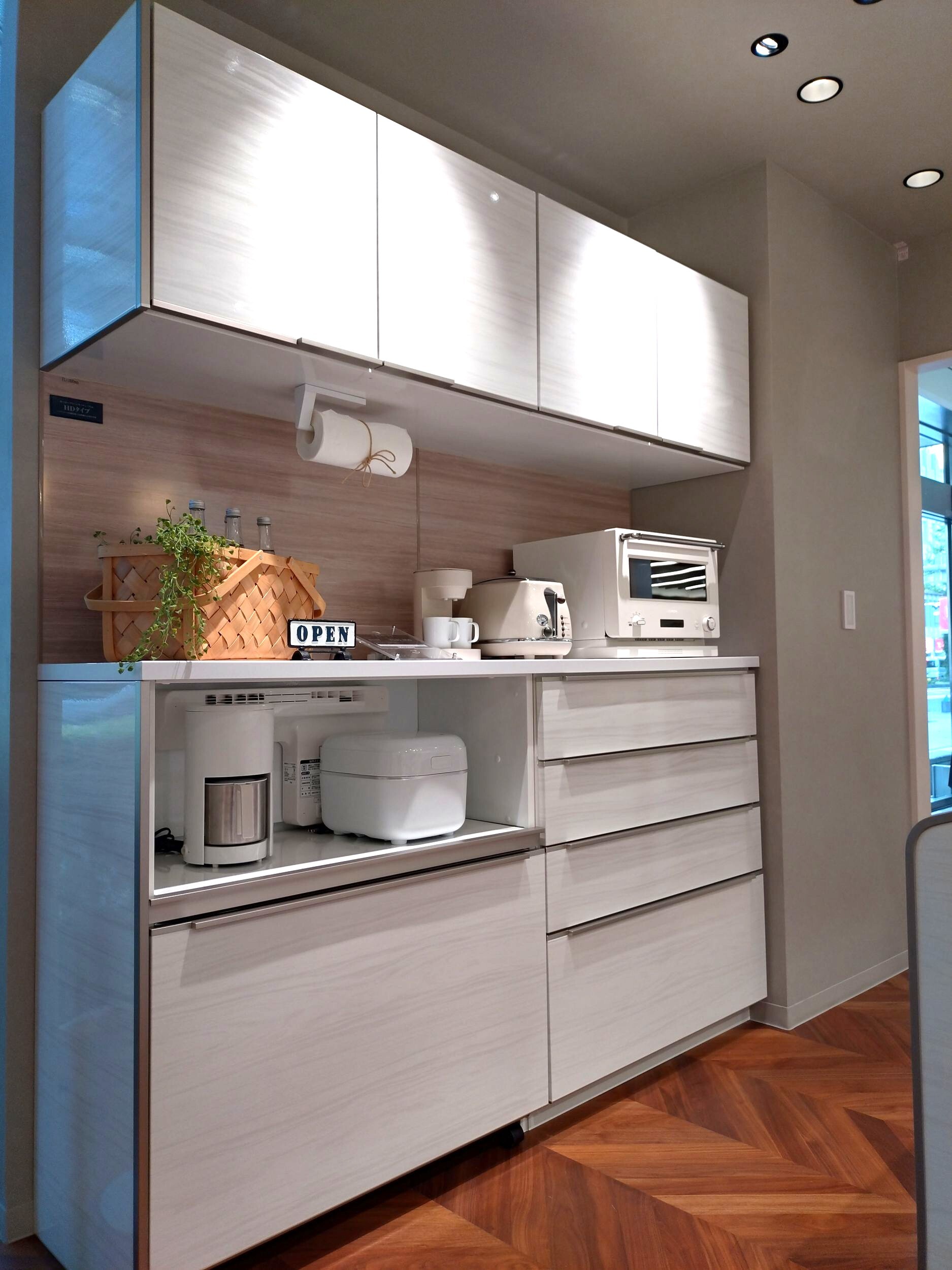 人気のカウンター式キッチン収納です。
