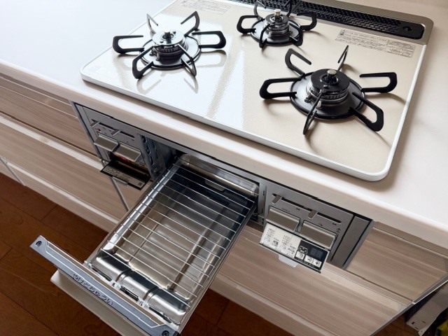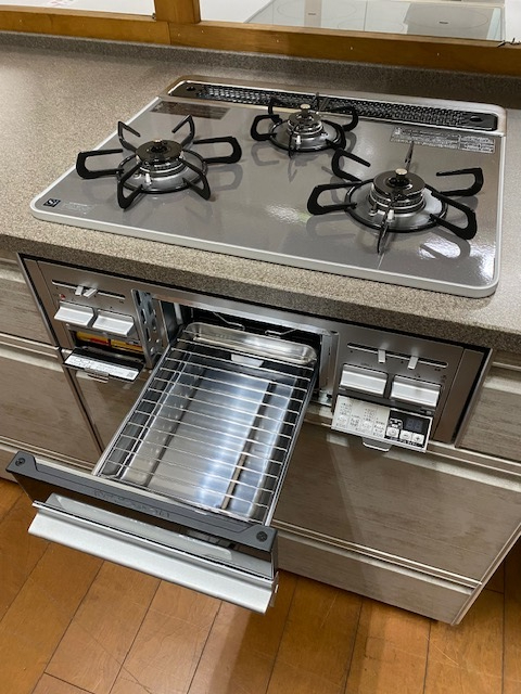 またその他タッチレス式浄水器内蔵ハンドシャワー水栓、オートグリル付きガスコンロ、高級レンジフード、ラ・クックグラン、ステンレスユーティリティシンクなど豪華なセット内容で超お勧めのキッチンです。
