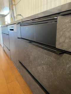 非常にシックで高級感のある天板と扉色の組み合わせが特徴のキッチンです。