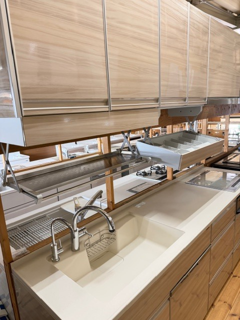 爽やかで明るい木目が人気の扉カラーにお手入れが楽なスリム型レンジフード、家事らくシンク、食洗機にガラストップコンロ、更にエコタイプハンドシャワー水栓と欲しい設備が揃ったお買得な1台です!