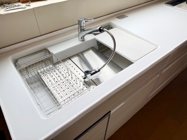 カウンター材質は安物に多いメラミン樹脂化粧のものではなく、人造大理石カウンターですので高級感があります。